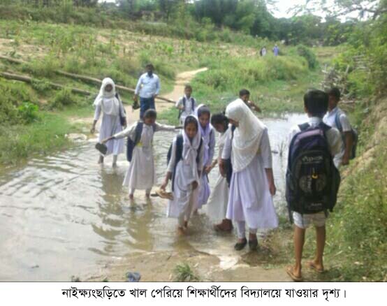 নাইক্ষ্যংছড়িতে ব্রীজের অভাবে খাল পাড়ি দিয়ে শিক্ষার্থীসহ নিজ গন্তব্যে যায় বিভিন্ন শ্রেণী পেশার মানুষ