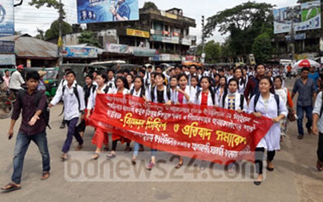 এছাড়া খাগড়াছড়ি সরকারি কলেজের ছাত্রছাত্রীরা বিক্ষোভ মিছিল করেছে।
