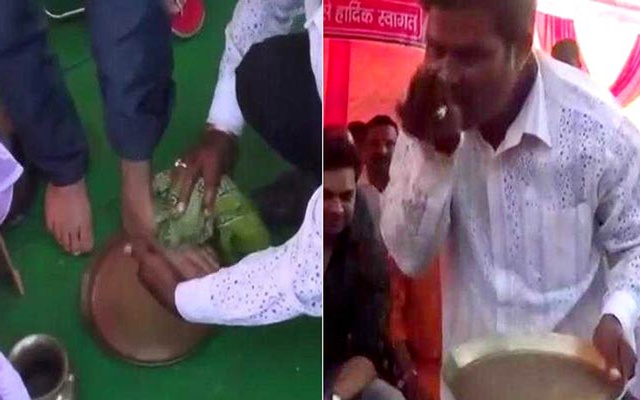 ভারতের ঝাড়খান্ড রাজ্যে এক বিজেপি নেতার পা ধোয়ার পর ওই ময়লা পানি পান করেছেন বিজেপির এক কর্মী।