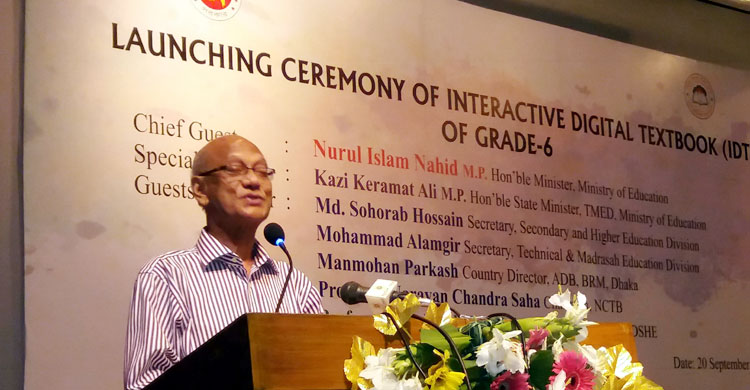 বৃহস্পতিবার রাজধানীর আন্তর্জাতিক মাতৃভাষা ইনস্টিটিউটে আয়োজিত ‘ডিজিটাল পাঠ্যপুস্তক উদ্বোধন অনুষ্ঠানে’ প্রধান অতিথি শিক্ষামন্ত্রী নুরুল ইসলাম নাহিদ এসব বিষয় তুলে ধরেন। অনুষ্ঠানে আরও বক্তব্য রাখেন শিক্ষা মন্ত্রণালয়ের মাধ্যমিক ও উচ্চ শিক্ষা বিভাগের সচিব মো. সোহরাব হোসাইন, কারিগরি ও মাদরাসা বিভাগের সচিব মো. আলমগীর, এডিবির কান্ট্রি ডিরেক্টর মোহাম্মদ পার্কাস।