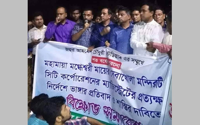 সোমবার দুপুরে সিটি করপোরেশনের অভিযানের মধ্যে সেবা খোলা মন্দির ভেঙে ফেলার পর স্থানীয় হিন্দু সম্প্রদায়ের মধ্যে ক্ষোভ ছড়িয়ে পড়ে।