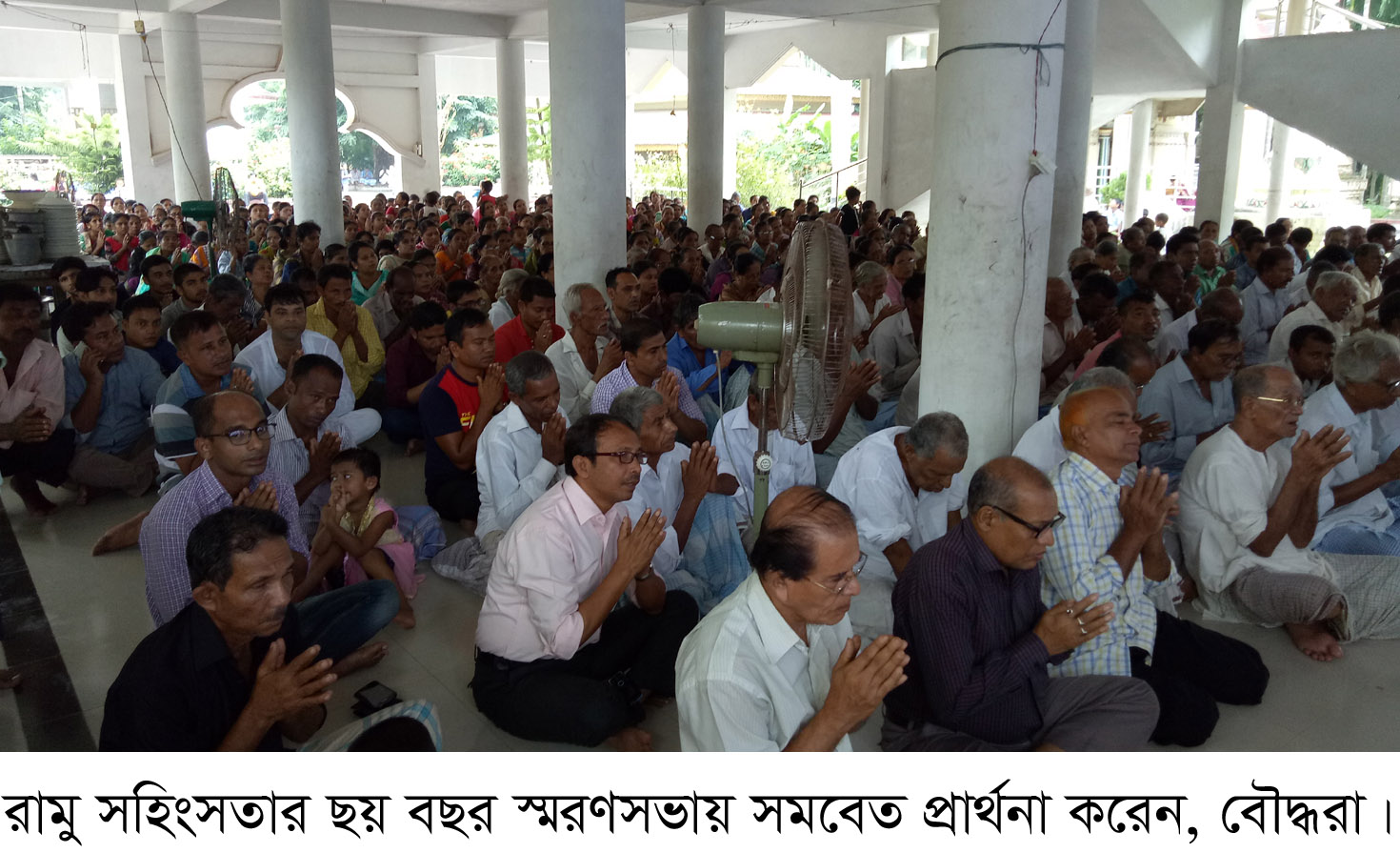 স্মরণসভায় ভিক্ষুসংঘ বলেন, ২০১২ সালের ২৯ ও ৩০ সেপ্টেম্বর কক্সবাজারের রামু, উখিয়া, টেকনাফ ও পটিয়ায় যে সাম্প্রদায়িক হামলা হয়, তাতে অনেক বৌদ্ধ বিহার, বসতঘর ধ্বংস হয়ে যায়। এঘটনায় রামু হাজার বছরের সম্প্রীতি বিনষ্ট হয় এবং ছয় বছর আগে আজকের দিনেই সেই সহিংসতার ঘটনা ঘটেছিল।ছয় বছরে রামুতে সাম্প্রদায়িক সম্প্রীতি অনেকটা ফিরে এসেছে।ক্ষত ভুলে স্বাভাবিক জীবন যাপন করার চেষ্টা করছে রামুর বৌদ্ধরা। দেশে আর যেন এমন ঘটনা না ঘটে, সেজন্য সকলের সজাগ থাকা উচিত। কারণ এসব ঘটনায় কারো লাভ হয়না।