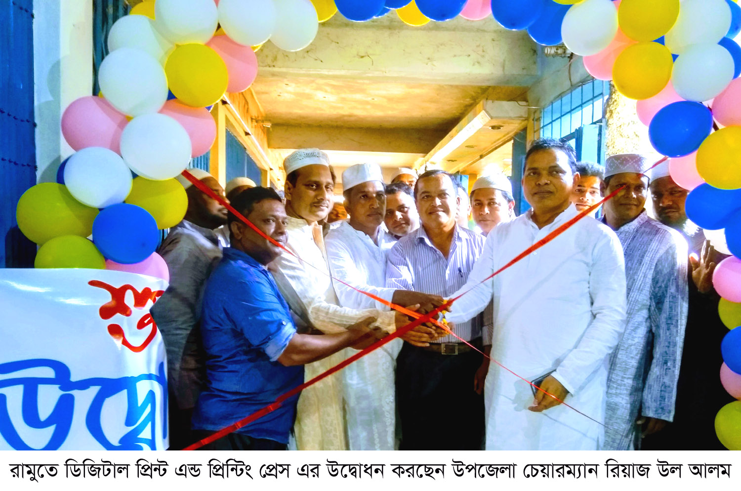 রামুতে ডিজিটাল প্রিন্ট এন্ড প্রিন্টিং প্রেস এর আনুষ্ঠানিক যাত্রা শুরু হয়েছে। শুক্রবার (২৬ অক্টোবর) বাদ জুমা রামু চৌমুহনী বালিকা উচ্চ বিদ্যালয়ের পশ্চিমে ভিক্টর প্লাজায় রামুবাসীর কাংখিত এ প্রতিষ্ঠানের উদ্বোধন করেন, রামু উপজেলা পরিষদের চেয়ারম্যান ও উপজেলা যুবলীগ সভাপতি রিয়াজ উল আলম। উদ্বোধন শেষে মোনাজাত পরিচালনা করেন, রামু বাইপাস কেন্দ্রীয় জামে মসজিদের খতিব মাওলানা হাফেজ আবদুল হক।