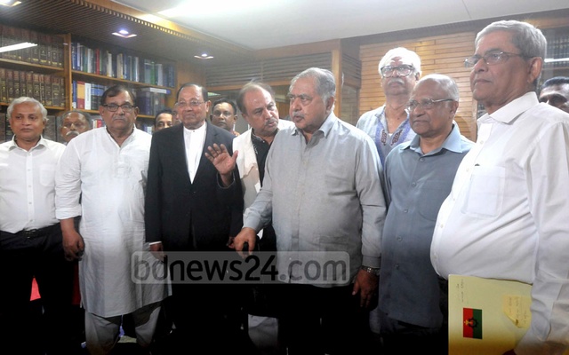 জাতীয় ঐক্যফ্রন্ট গঠনে সক্রিয় জাফরুল্লাহ চৌধুরী, জাতীয় ঐক্য প্রক্রিয়ার সদস্য সচিব আ ব ম মোস্তফা আমীন, সাবেক দুই সংসদ সদস্য এস এম আকরাম ও সুলতান মো. মনসুর আহমেদ যাচ্ছেন গণভবনে।