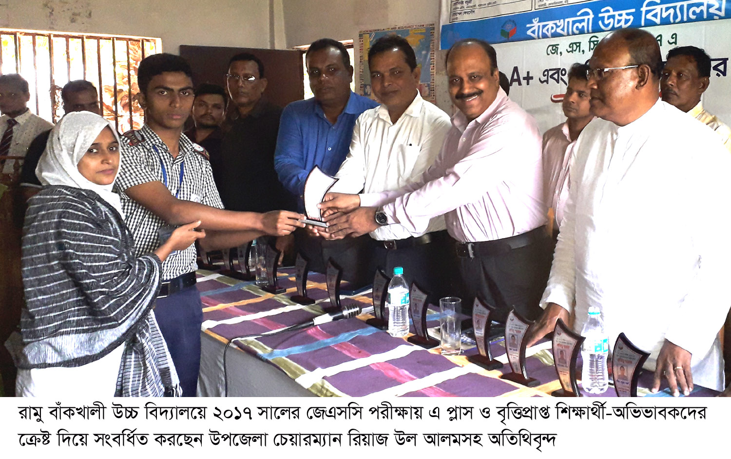 রামু বাঁকখালী উচ্চ বিদ্যালয়ে ২০১৭ সালের জেএসসি পরীক্ষায় এ প্লাস এবং বৃত্তিপ্রাপ্ত শিক্ষার্থী-অভিভাবকদের সংবর্ধনা দেয়া হয়েছে। মঙ্গলবার (২০ নভেম্বর) দুপুরে বিদ্যালয় মিলনায়তনে এ উপলক্ষ্যে আয়োজিত অনুষ্ঠানে সম্মানিত অতিথি ছিলেন, রামু উপজেলা পরিষদ চেয়ারম্যান ও উপজেলা যুবলীগ সভাপতি রিয়াজ উল আলম।