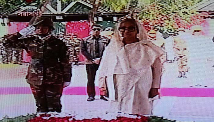 প্রধানমন্ত্রী শ্রদ্ধা নিবেদনের পর সমাধিসৌধের বেদীর পাশে কিছু সময় নিরবে দাঁড়িয়ে থাকেন। এ সময় তিন বাহিনীর পক্ষ থেকে গার্ড অব অর্নার প্রদান করা হয়।