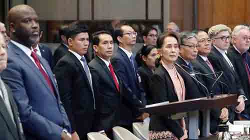 হয়েছে। উপরন্তু সু চি আন্তর্জাতিক আদালতে মিয়ানমারের বিষয়কে টেনে আনায় রাখাইনে আন্তধর্মীয় সহাবস্থান হুমকিতে পড়তে পারে বলেও হুঁশিয়ারি দিয়েছেন। তিনি আইসিজেকে মিয়ানমারের নিজস্ব বিষয় নিজেকেই সামলাতে দেওয়ার জন্য অনুরোধ করেছেন।