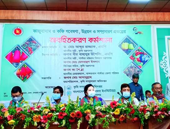 কৃষি মন্ত্রীআরো বলেন, কাজু বাদাম ও কফি চাষে গবেষনা ২১১ কোটি টাকা প্রকল্প হাতে নিয়েছে সরকার। আর এই প্রকল্প পার্বত্য এলাকা সহ সারাদেশে কাজু বাদাম ও কফি চাষবাদ শুরু করবে।