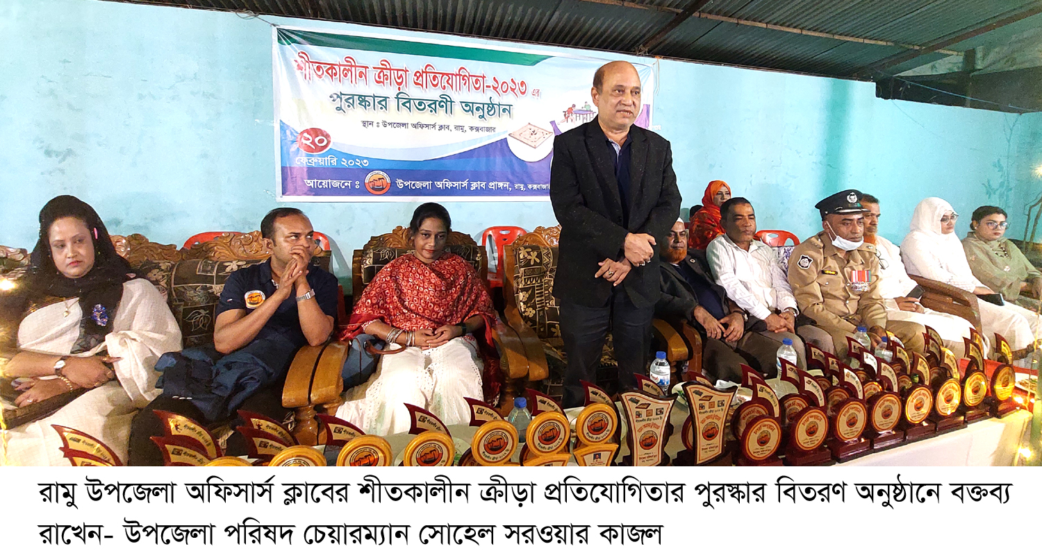 রামু উপজেলা অফিসার্স ক্লাবের আয়োজনে শীতকালীন ক্রীড়া প্রতিযোগিতা ও পুরস্কার বিতরণ অনুষ্ঠান সম্পন্ন হয়েছে। পুরস্কার বিতরণ অনুষ্ঠানে প্রধান অতিথির বক্তব্য রাখেন- রামু উপজেলা পরিষদ চেয়ারম্যান সোহেল সরওয়ার কাজল। এতে সভাপতিত্ব করেন- রামু উপজেলা নির্বাহী অফিসার ফাহমিদা মুস্তফা।