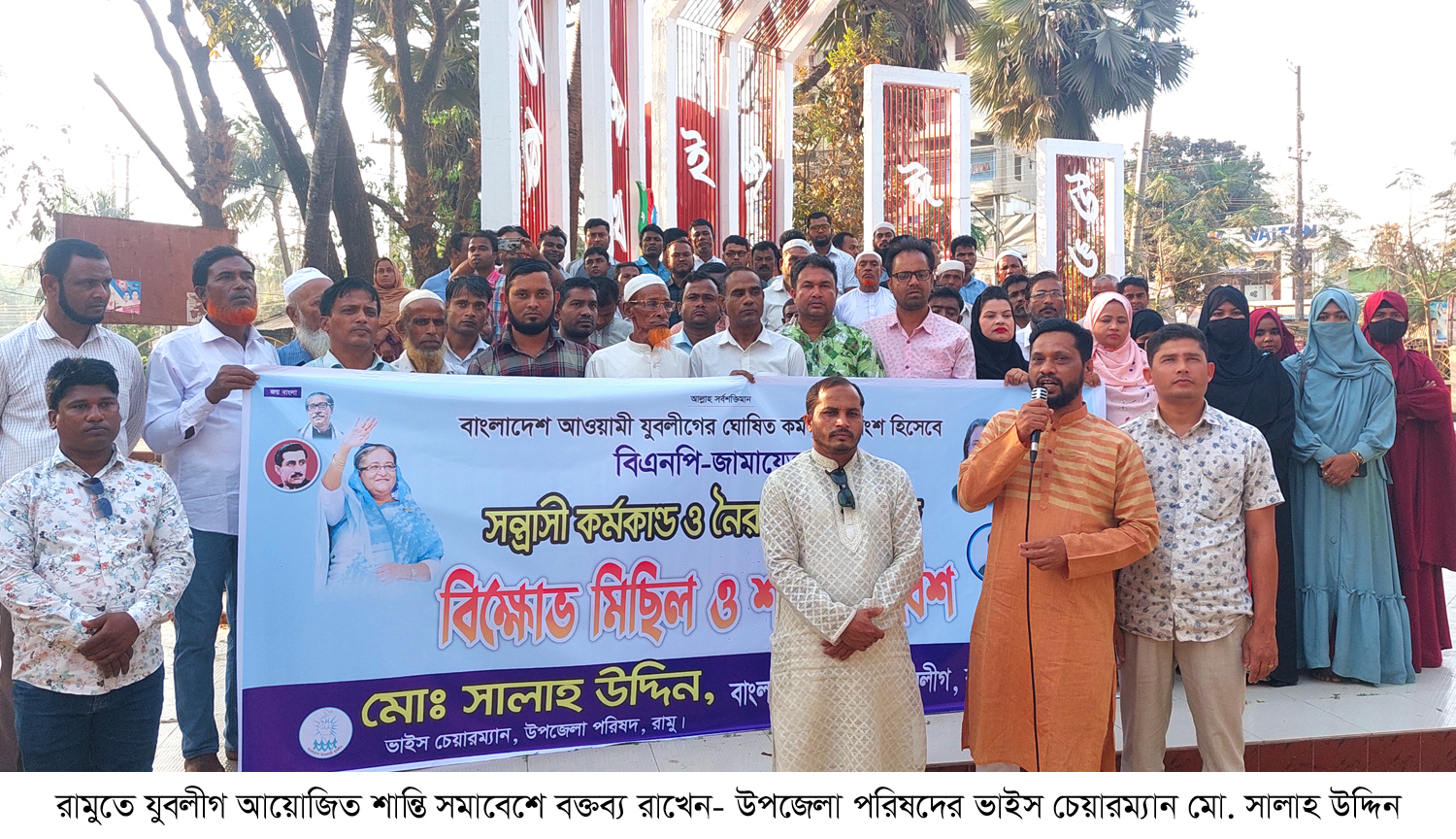 বাংলাদেশ আওয়ামী যুবলীগের ঘোষিত কর্মসূচির অংশ হিসেবে বিএনপি-জামায়াতের সন্ত্রাসী কর্মকান্ড ও নৈরাজ্যের প্রতিবাদে বাংলাদেশ আওয়ামী যুবলীগ রামু উপজেলার উদ্যোগে বিক্ষোভ মিছিল ও শান্তি সমাবেশ অনুষ্ঠিত হয়েছে। শনিবার, ৪ মার্চ বিকাল ৪ টায় রামু উপজেলা কেন্দ্রীয় শহীদ মিনার চত্বরে আয়োজিত সমাবেশে প্রধান অতিথির বক্তব্য রাখেন- রামু উপজেলা পরিষদের ভাইস চেয়ারম্যান ও আসন্ন রামু উপজেলা যুবলীগের সম্মেলনে সাধারণ সম্পাদক প্রার্থী মো. সালাহ উদ্দিন।