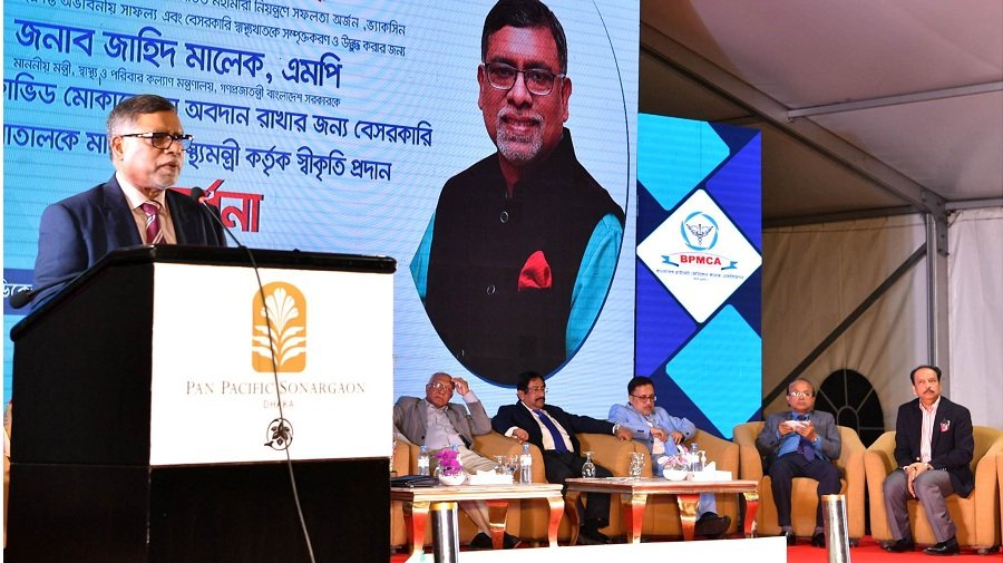 অনুষ্ঠানে বিশ্বের ১০০ বছরের ইতিহাসে কোভিড মহামারি নিয়ন্ত্রণে সফলতা অর্জন, ভ্যাকসিন সংগ্রহ, বিতরণ ও প্রয়োগে অভাবনীয় সাফল্য অর্জন করার জন্য স্বাস্থ্যমন্ত্রী জাহিদ মালেক’কে বেসরকারি স্বাস্থ্য সেক্টরের পক্ষ হতে সংবর্ধনা প্রদান করা হয়।