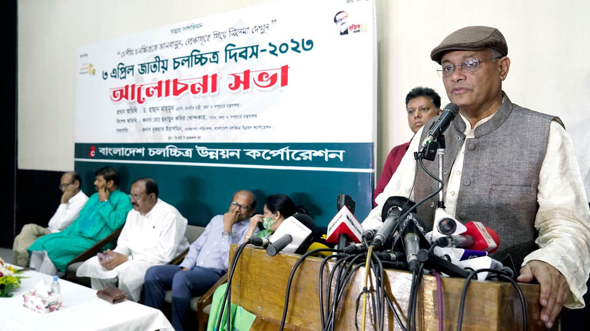 জাতীয় চলচ্চিত্র দিবস-২০২৩ উদযাপন উপলক্ষ্যে সোমবার (৩ এপ্রিল) দুপুরে রাজধানীর তেজগাঁওয়ে বাংলাদেশ চলচ্চিত্র উন্নয়ন কর্পোরেশনের (বিএফডিসি) জহির রায়হান কালার ল্যাব মিলনায়তনে আয়োজিত আলোচনা সভায় প্রধান অতিথি বক্তৃতায় মন্ত্রী এ কথা বলেন।