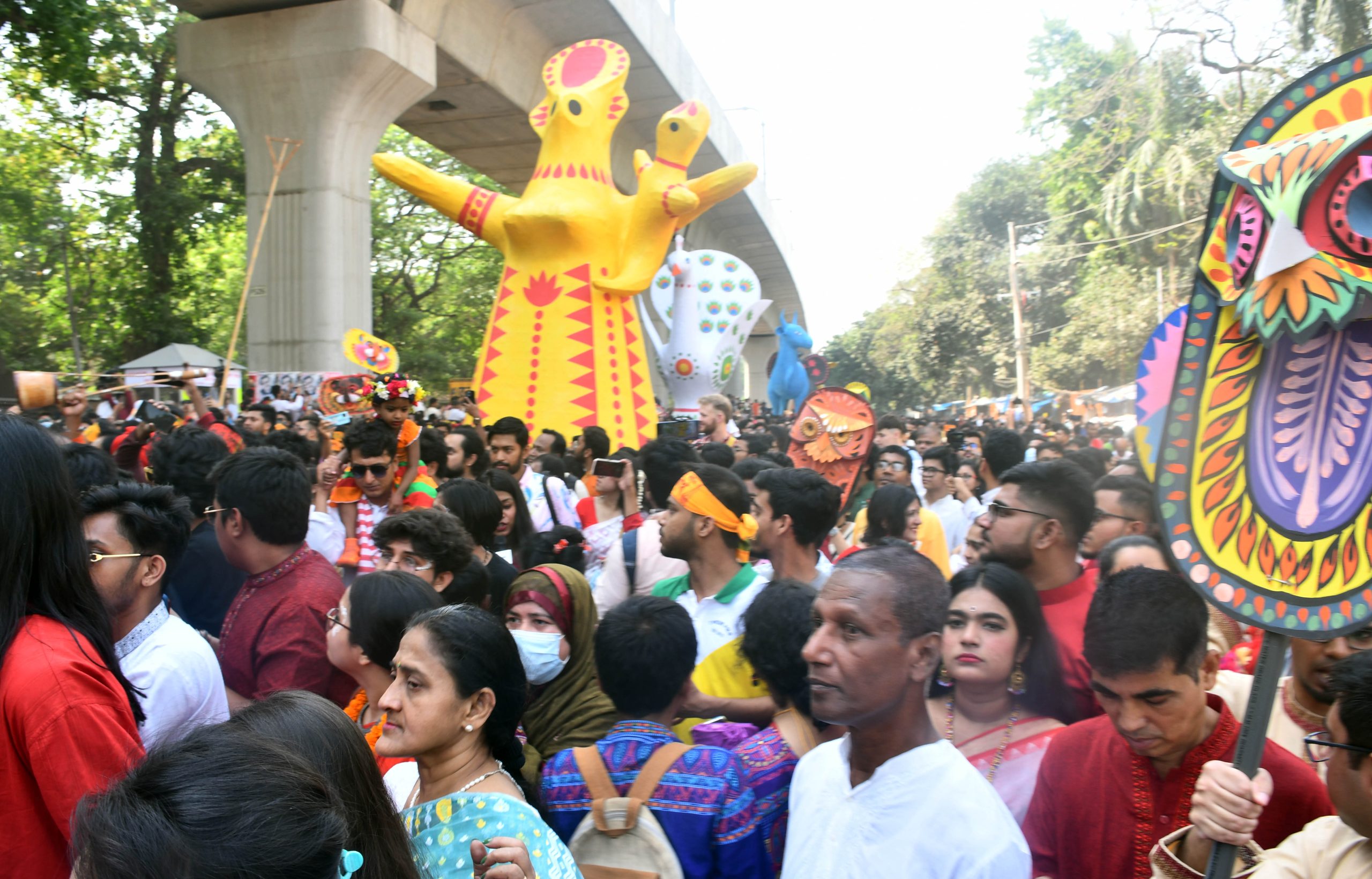 সকালে শোভাযাত্রার উদ্বোধন করেন ঢাকা বিশ্ববিদ্যালয়ের উপাচার্য অধ্যাপক মো. আখতারুজ্জামান। শোভাযাত্রায় সংস্কৃতি প্রতিমন্ত্রী কে এম খালিদ, উপ-উপাচার্য (প্রশাসন) অধ্যাপক মুহাম্মদ সামাদ, উপ-উপাচার্য (শিক্ষা) অধ্যাপক এ এস এম মাকসুদ কামাল, বিশ্ববিদ্যালয়ের শিক্ষক, শিক্ষার্থী ও বিভিন্ন স্তরের মানুষ স্বতঃস্ফূর্তভাবে অংশ নিয়েছেন। কঠোর নিরাপত্তার চাদরে মোড়ানো ছিল পুরো এলাকা।