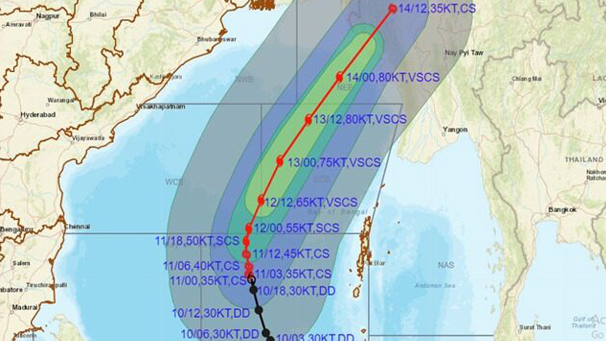 বিজ্ঞপ্তিতে জানানো হয়, এটি আজ দুপুর ১২টায় চট্টগ্রাম সমুদ্রবন্দর থেকে ১২৫৫ কি.মি. দক্ষিণ- দক্ষিণপশ্চিমে, কক্সবাজার সমুদ্রবন্দর থেকে ১১৮০ কিলোমিটার দক্ষিণ-দক্ষিণপশ্চিমে, মোংলা সমুদ্রবন্দর থেকে ১২২০ কিলোমিটার দক্ষিণ-দক্ষিণপশ্চিমে এবং পায়রা সমুদ্রবন্দর থেকে ১১৮৫ কিলোমিটার দক্ষিণ-দক্ষিণপশ্চিমে অবস্থান করছিল ঘূর্ণিঝড়টি। এটি আরও ঘণীভূত হয়ে শুক্রবার সকাল পর্যন্ত উত্তর-উত্তরপশ্চিম দিকে এবং পরবর্তীতে দিক পরিবর্তন করে ক্রমান্বয়ে উত্তর-উত্তরপূর্ব দিকে অগ্রসর হতে পারে।