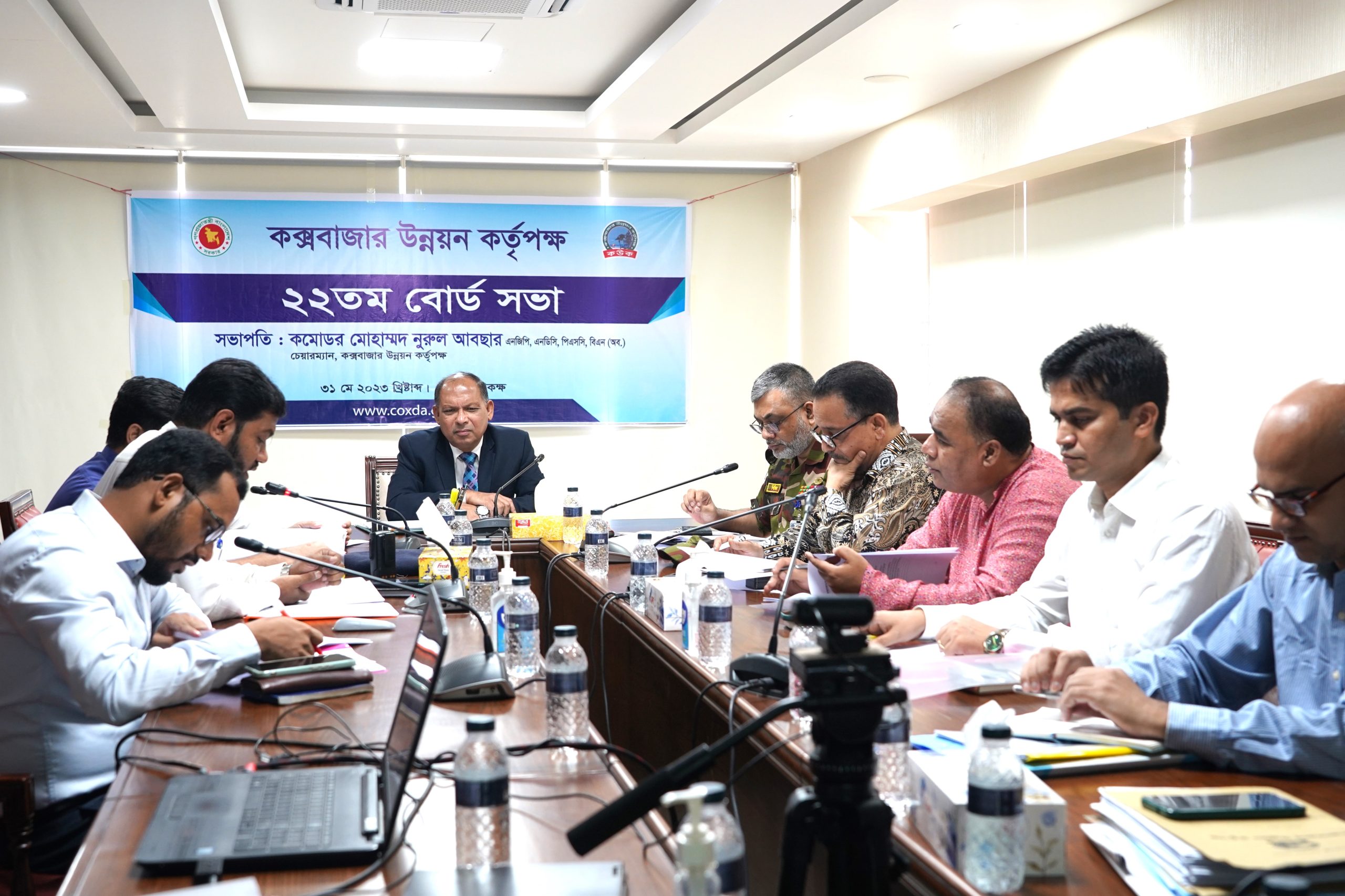 কক্সবাজার উন্নয়ন কর্তৃপক্ষের ২২তম বোর্ড সভা আজ (৩১ মে ২০২৩ তারিখ) কউক সভাকক্ষে অনুষ্ঠিত হয়। সভার শুরুতে কউকের চলমান প্রকল্পসমূহের প্রকল্প পরিচালকগণ স্ব স্ব প্রকল্পের বাস্তবায়ন অগ্রগতির চিত্র বোর্ডের সদস্যগণের নিকট তুলে ধরেন। তন্মধ্যে হলিডে মোড়-বাজারঘাটা-লারপাড়া (বাস স্ট্যান্ড) প্রধান সড়ক সংস্কারসহ প্রশস্তকরণ, আবাসিক ফ্ল্যাট উন্নয়ন প্রকল্প-১ এবং কক্সবাজার জেলার মহাপরিকল্পনা প্রণয়ন অন্যতম। কউক চেয়ারম্যান প্রকল্পের গুণমত মান অক্ষুণ্ন রেখে নির্ধারিত সময়ে প্রকল্পের কাজ সমাপ্ত করার লক্ষ্যে যথাযথ ব্যবস্থাপনা নিশ্চিত করতে প্রকল্প পরিচালকগণকে অনুরোধ করেন। এছাড়াও কক্সবাজারের প্রণীতব্য মহাপরিকল্পনায় যাতে স্থানীয় জনগণের আশা-আকাঙ্ক্ষা প্রতিফলিত হয় তার জন্য উপজেলা পর্যায়ে শীঘ্রই জনসাধারণের সাথে মতবিনিময় সভা আয়োজনের নির্দেশনা প্রদান করেন। এছাড়াও সভায় কউকের ভবিষ্যৎ কর্মপরিকল্পনা ও প্রস্তাবিত প্রকল্পসমূহ নিয়ে বোর্ড সদস্যগণকে অবহিত করা হয়।