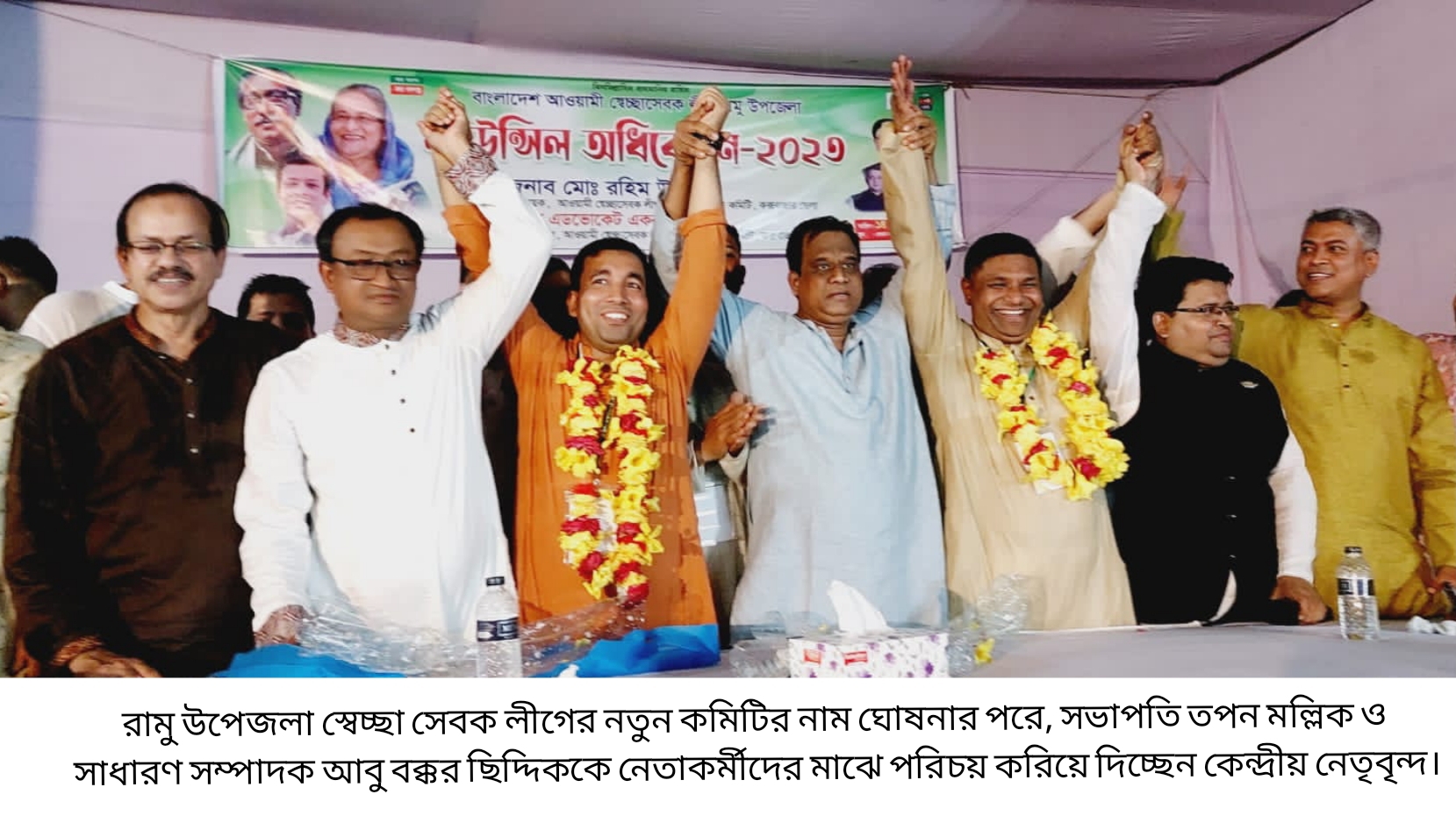 আওয়ামী স্বেচ্ছাসেবক লীগ, রামু উপজেলার নতুন সভাপতি নির্বাচিত হয়েছেন তপন মল্লিক। সাধারণ সম্পাদক আবু বক্কর ছিদ্দিক। তপন মল্লিক সদ্য বিদায়ী কমিটির সাধারণ সম্পাদক ও আবু বক্কর ছিদ্দিক ছিলেন যুগ্ম-সাধারণ সম্পাদক। তাঁরা জেলা স্বেচ্ছাসেবক লীগের সম্মেলন প্রস্তুতি কমিটির সদস্য। এ কমিটিতে জ্যেষ্ঠ সহ-সভাপতি হয়েছেন আনছারুল হক ভূট্টো। দীর্ঘ সাড়ে ১৭ বছর পরে রামু উপজেলা স্বেচ্ছা সেবক লীগের নতুন কমিটি গঠিত হয়েছে।