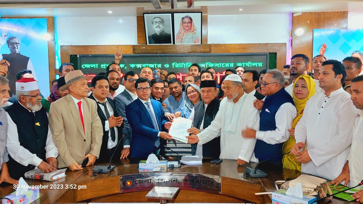 বৃহস্পতিবার (৩০ নভেম্বর) দুপুর তিনটার দিকে রিটার্নিং কর্মকর্তা ও কক্সবাজার জেলা প্রশাসক মুহাম্মদ শাহিন ইমরানের হাতে মনোনয়নপত্র জমা দেন তিনি।