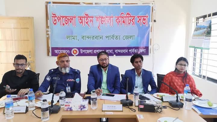 বান্দরবানের লামা উপজেলা আইনশৃঙ্খলা কমিটির নিয়মিত মাসিক সভা অনুষ্ঠিত হয়েছে। সোমবার (২৪ ফেব্রুয়ারী) সকালে পরিষদ হলরুমে প্রশাসনের আয়োজনে এসময় লামা উপজেলার নবাগত উপজেলা নির্বাহী অফিসার মোঃ মঈন উদ্দিন সভায় সভাপতিত্ব করেন।