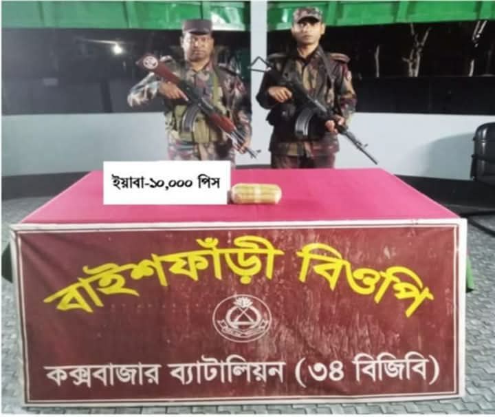 নাইক্ষ্যংছড়ি সীমান্তের বাইশফাঁড়ি থেকে ১০ হাজার ইয়াবা জব্দ