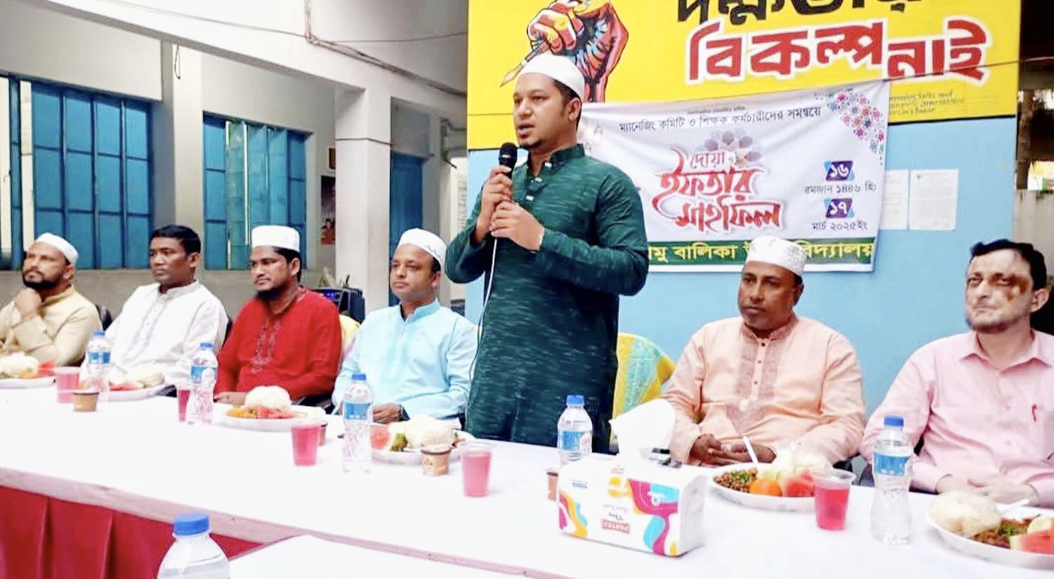 এতে মুসলিম উম্মাহর কল্যাণ ও সমৃদ্ধি কামনায় মোনাজাত পরিচালনা করেন- বিদ্যালয়ের শিক্ষক মুফিজুর রহমান। দোয়া ও ইফতার আয়োজনে শিক্ষানুরাগী ব্যক্তিবর্গ, সাংবাদিক, বিদ্যালয়ের শিক্ষক-কর্মচারিবৃন্দ অংশ নেন।