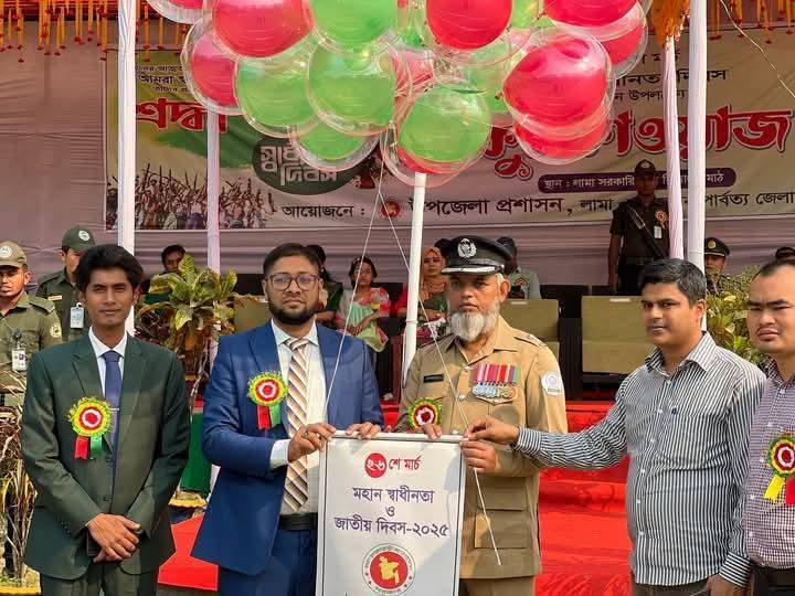 ২৬ মার্চ ভোরে ৩১ বার তোপধ্বনি ও স্মৃতিশোধে পুষ্পমাল্য অর্পণের মধ্য দিয়ে লামা উপজেলা প্রশাসন যথাযোগ্য মর্যাদায় মহান স্বাধীনতা ও জাতীয় দিবস-২০২৫ পালন করেছে। বুধবার (২৬ মার্চ) দিনব্যাপী নানা কর্মসূচির মধ্য দিয়ে দিবসটি পালিত হয়।