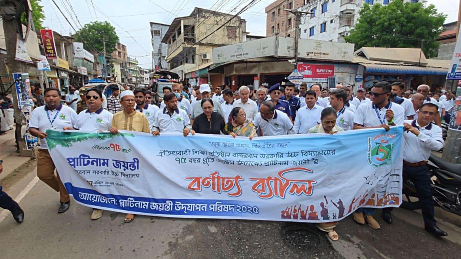 প্রথমবারের মত বান্দরবান জেলার স্বনামধন্য শিক্ষা প্রতিষ্ঠান বান্দরবান সরকারী উচ্চ বিদ্যালয়ের ৭৫ বছর পূর্তিতে ১ম ব্যাচের শিক্ষার্থীসহ প্রায় ২ হাজারেরও বেশি শিক্ষার্থীর অংশ গ্রহনের মাধ্যমে বর্ণাঢ্য আয়োজনে প্লাটিনাম জয়ন্তী উৎসব অনুষ্ঠিত হয়েছে।