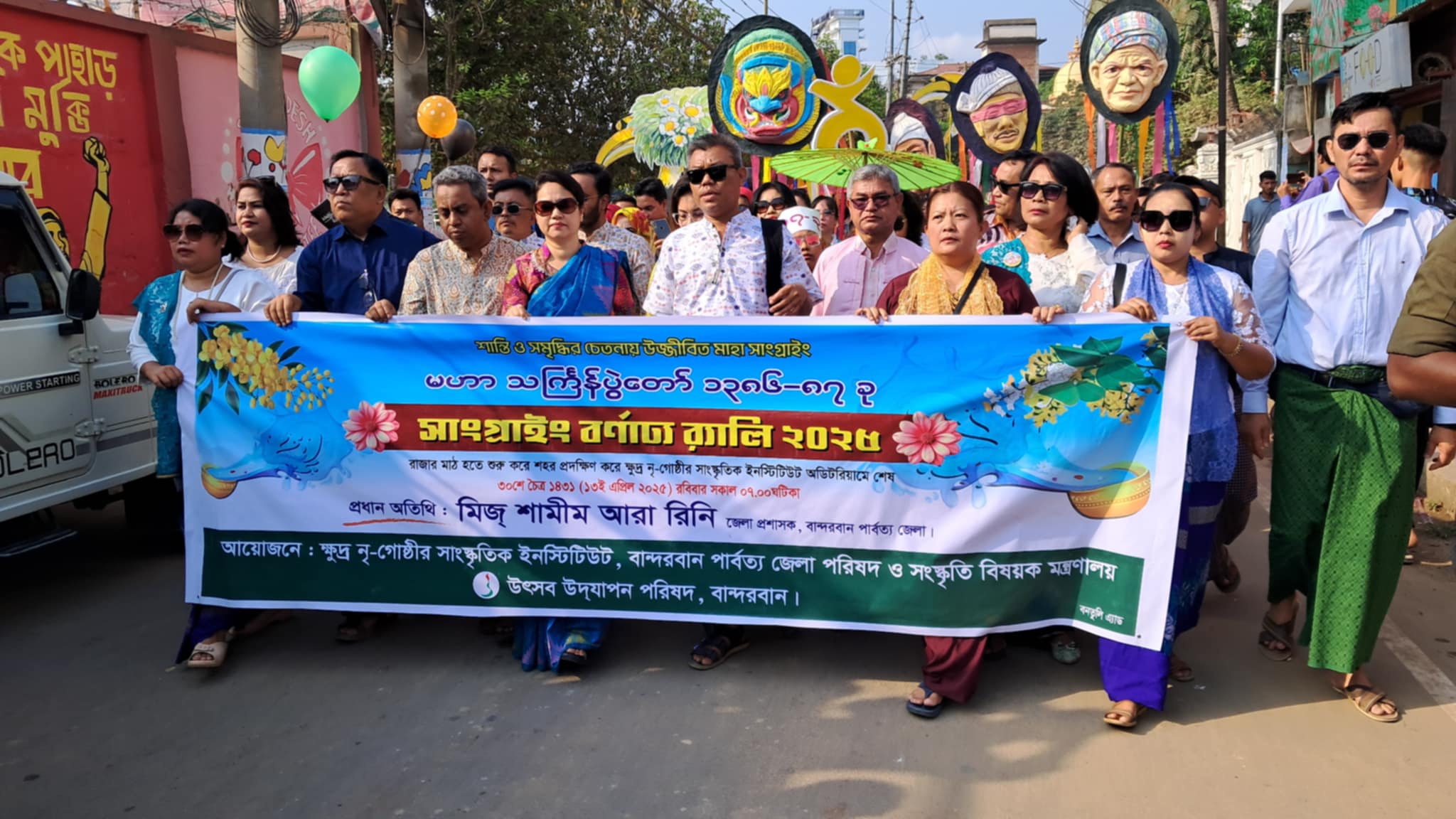 জেলা প্রশাসক শামীম আরা রিনি রাজার মাঠে বেলুন উড়িয়ে এই শোভাযাত্রার উদ্বোধন করেন। তিনি বলেন, “বান্দরবানসহ পার্বত্য তিন জেলার ১১টি জাতিগোষ্ঠীর সাংস্কৃতিক বৈচিত্র্য বাংলাদেশের সামগ্রিক সংস্কৃতিকে আরও সমৃদ্ধ করেছে। এই উৎসবের মধ্য দিয়ে জাতিগত ঐক্য ও সম্প্রীতির দৃষ্টান্ত স্থাপিত হয়েছে।” তিনি আরও জানান, বাংলা নববর্ষ উপলক্ষে ঢাকায় আয়োজিত আনন্দ শোভাযাত্রায় ক্ষুদ্র জাতিগোষ্ঠীদের উপস্থিতি এবার বিশেষ গুরুত্ব পাবে। “এই বৈচিত্র্যময় সাংস্কৃতিক ঐক্যের জন্য আন্তর্জাতিক পরিমণ্ডলেও বাংলাদেশের ভাবমূর্তি উজ্জ্বল হয়েছে,”—যোগ করেন জেলা প্রশাসক।