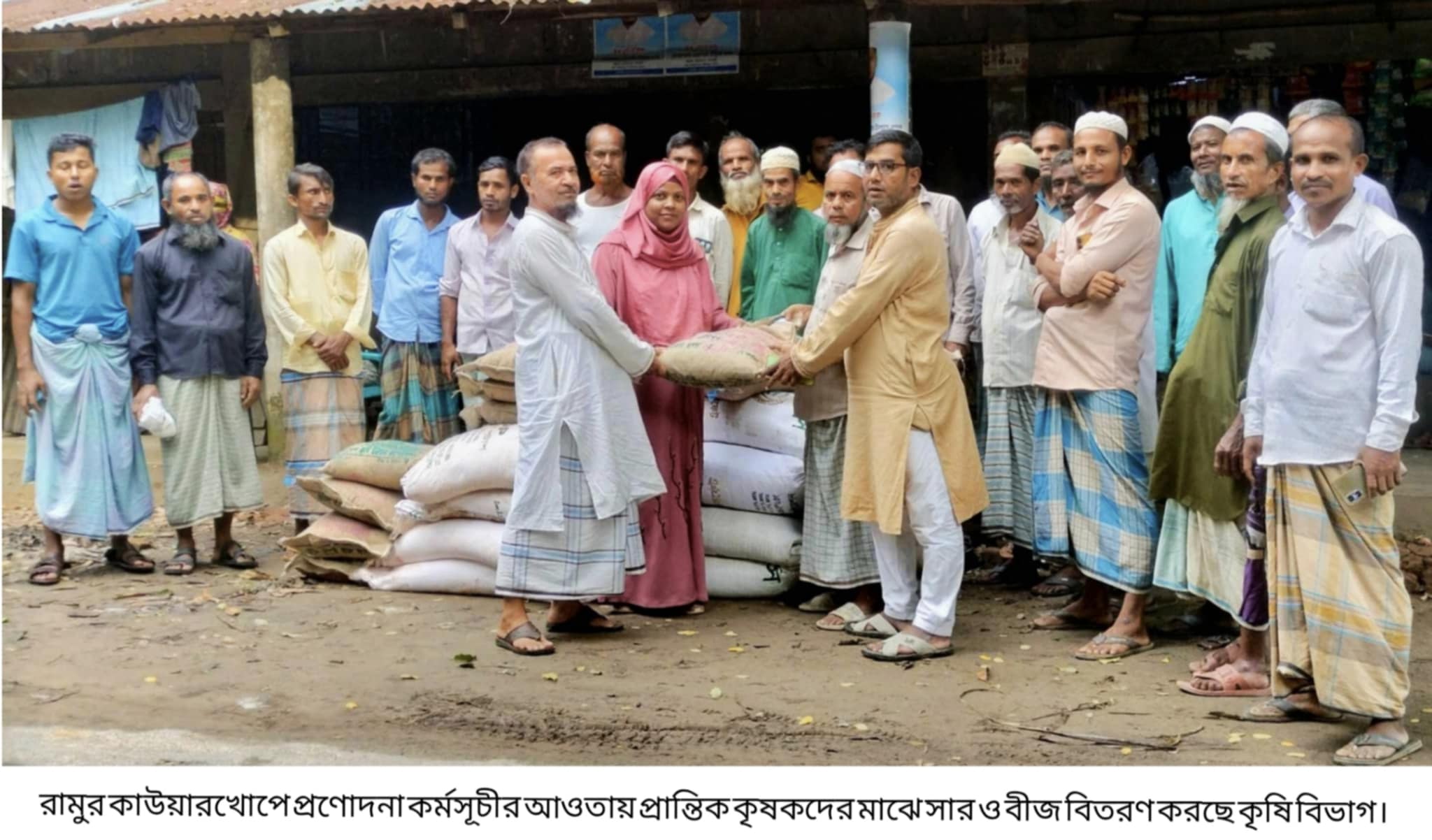 রামুতে কৃষি প্রণোদনা কর্মসূচির আওতায় ১৫৫ জন প্রান্তিক কৃষকদের মাঝে বিনামূল্যে সার ও বীজ বিতরণ করা হয়েছে। বৃহস্পতিবার (২৬ জুন) দুপুর থেকে বিকাল পর্যন্ত রামু উপজেলার কাউয়ারখোপ ইউনিয়নের বিভিন্ন গ্রামে প্রান্তিক কৃষকদের জনপ্রতি ২০ কেজি এমওপি ও ড্যাপ সার এবং ৫ কেজি উচ্চ ফলনশীল ধানের জাতের বীজ বি আর ৮৭ বিতরণ করা হয়। কাউয়ারখোপ ইউনিয়নের পুর্ব মনিরঝিল, কাউয়ারখোপ পূর্বপাড়া ও উখিয়ার ঘোনা গ্রামের কৃষকদের মাঝে এসব সার ও বীজ বিতরণ করা হয়েছে।