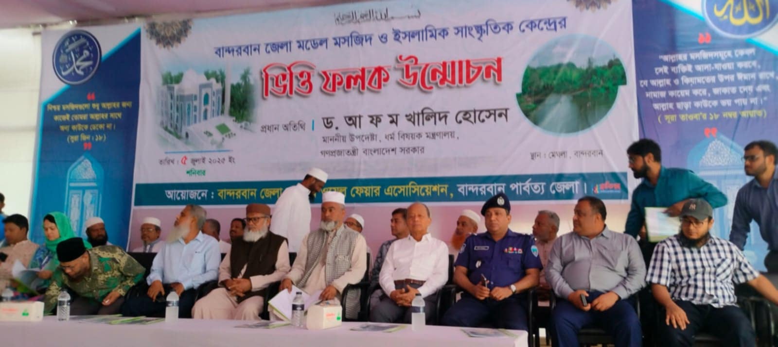 শনিবার (৫জুলাই) সকাল ১০ টায় বান্দরবান সদর উপজেলার মেঘলা মডেল মসজিদের ভিত্তিফলক উন্মোচন কালে এ কথা বলেন। তিনি বলেন, শান্তি প্রশান্তির খোঁজে মানুষ মসজিদে আসেন।মানুষ এবাদত ও নামাজ মূখী হলে সমাজে অপরাধ প্রবনতা হ্রাস পায়। নামাজ মানুষকে অশ্লীলতা ও গরহিত কাজ থেকে রক্ষা করে।আমরা বিশ্বাস করি, মসজিদের মাধ্যমে নৈতিকতা মূল্যবোধ ভ্রতৃত্ববোধ সাম্প্রদায়িক সম্প্রীতির বার্তা সমাজের কাছে পৌঁছে যাবে বলে উল্লেখ করেন তিনি।
