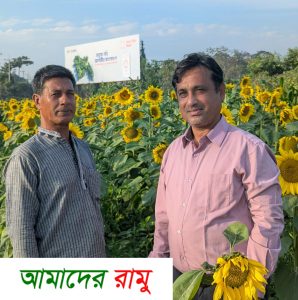 জানা গেছে, কক্সবাজার-চট্টগ্রাম মহাসড়কের পাশে রামু উপজেলার পূর্ব মেরংলোয়া গ্রামে ১ বিঘা জমিতে, ওই গ্রামের কৃষি উদ্যোক্তা আকতার কামাল আলু চাষের সাথী ফসল হিসেবে চাষ করেছেন সূর্যমুখী ফুল। ৮৫ দিন পূর্বে বপন করা বীজ, চার-পাঁচ ফুট উঁচু গাছে পরিণত হয়েছে। গত দুই সপ্তাহে পরিপক্ক গাছে ফুলে ফুলে ছেয়ে গেছে। দূর থেকে দেখে মনে হয় সবুজের বুকে হলুদ ফুলের চাদর।