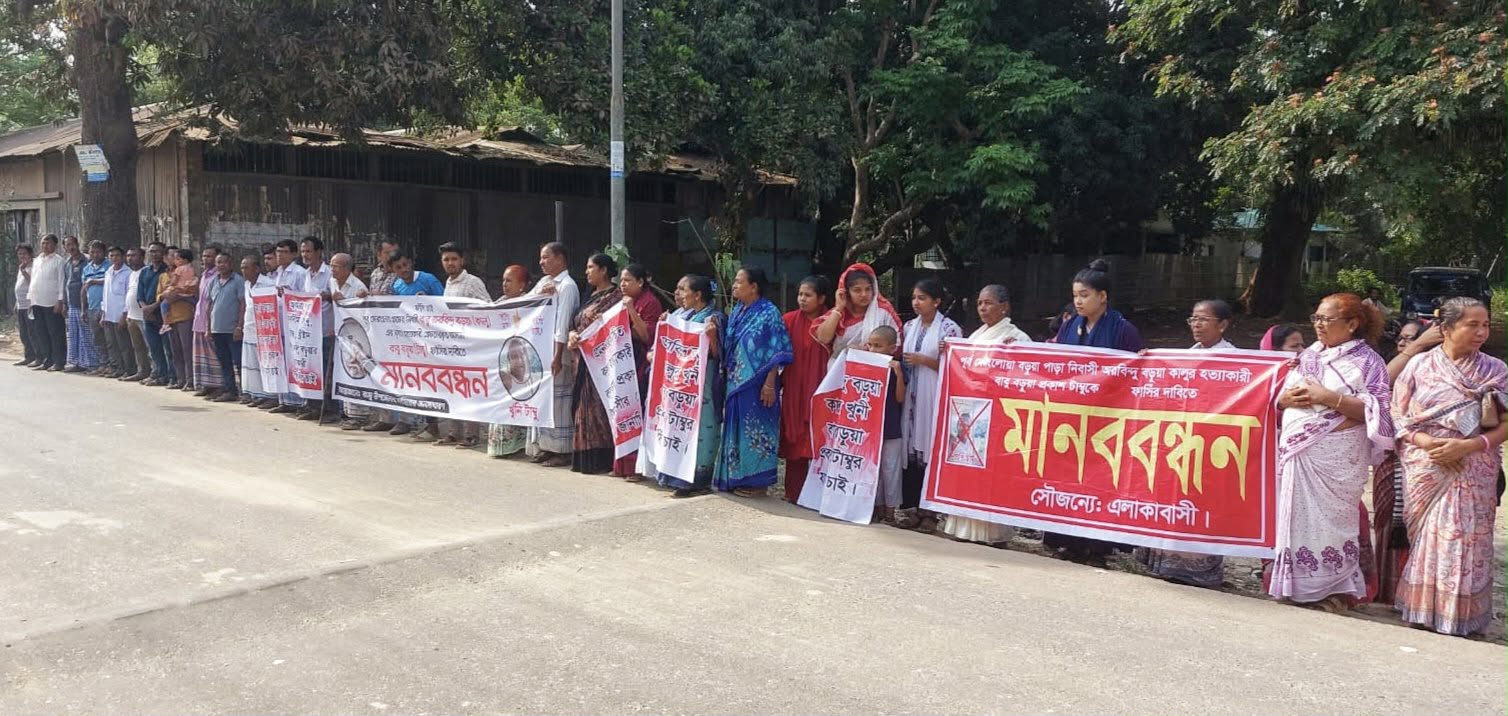 মানববন্ধনে স্থানীয় গ্রামবাসী বিমল বড়ুয়া, নিহত অরবিন্দু বড়ুয়া কালুর স্ত্রী নমিতা বড়ুয়া, বোন বিধু বড়ুয়া, ভাই পরিমল বড়ুয়া, পুত্রবধূ সোমা বড়ুয়া, মেয়ে শিপ্রা বড়ুয়া, জামাতা পুলক বড়ুয়া সহ স্থানীয়রা বক্তৃতা করেন।